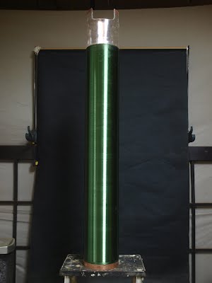 For the connections to the coil i've used copper tape which is easy to solder, the tape then makes contact to the RF connection and toploads, a couple of very small holes allow the wire to be secured mechanically before being soldered.